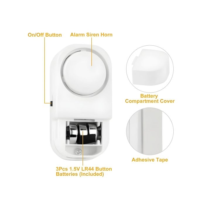 Enhance the security of your home or office with the Door/Window Entry Alarm. This easy-to-install alarm features a magnetic sensor switch that detects any entry, providing reliable protection whether you are inside or out. The alarm system works by using double-sided adhesive tape to securely mount the main unit on the door or window, while the bar magnet is placed on the door or window frame.