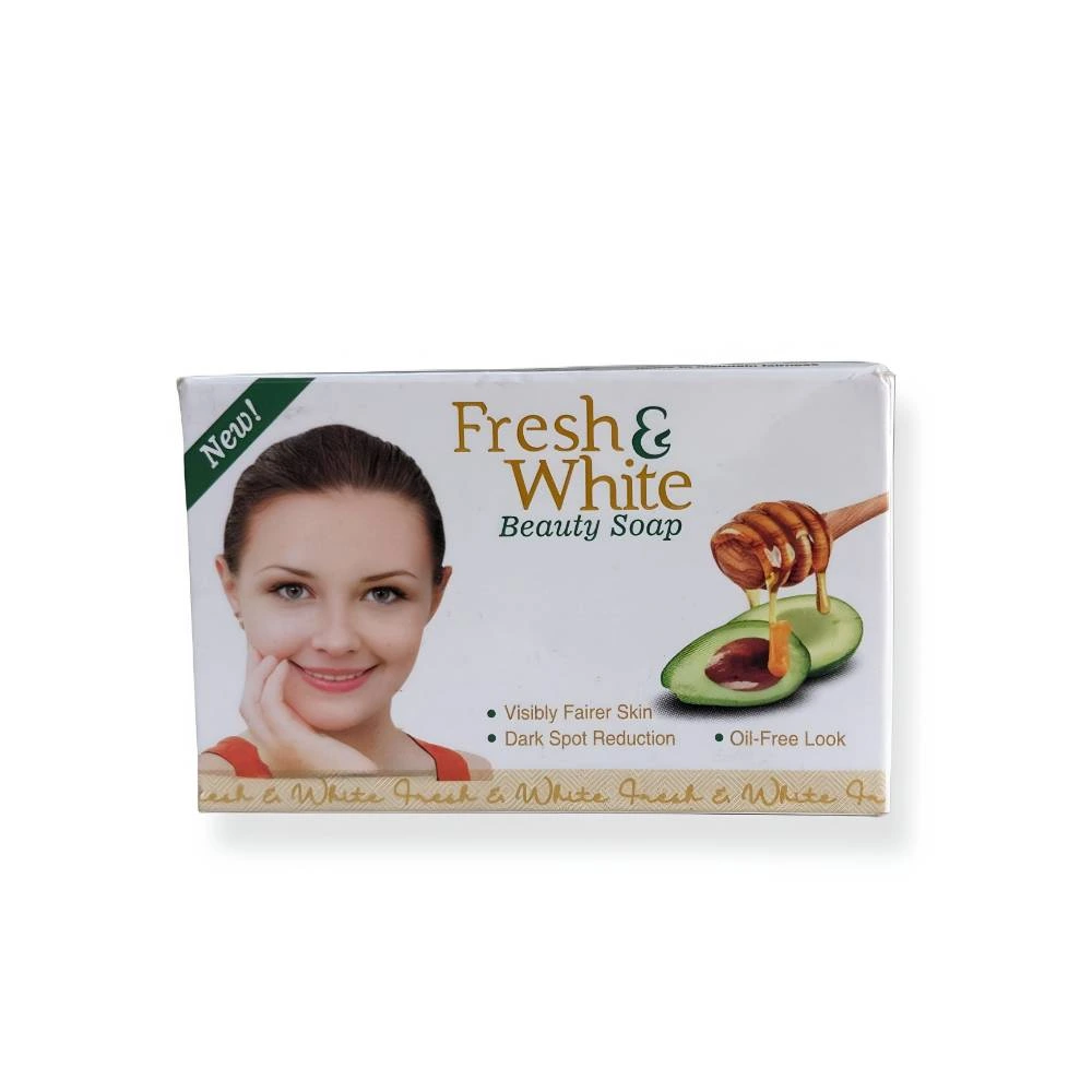 Fresh & White Beauty Soap with Avocado & Honey is expertly formulated to deliver visibly fairer skin, reduce dark spots, and promote an oil-free look. Enriched with natural avocado extract and pure honey, this gentle cleansing bar nourishes the skin while helping to restore clarity and smoothness. Ideal for daily use, it supports a radiant complexion and helps minimize blemishes without stripping moisture. Dermatologically tested and suitable for all skin types, Fresh & White combines nature’s goodness with proven skincare benefits. Experience a refreshing cleanse that leaves your skin feeling soft, balanced, and visibly brighter.