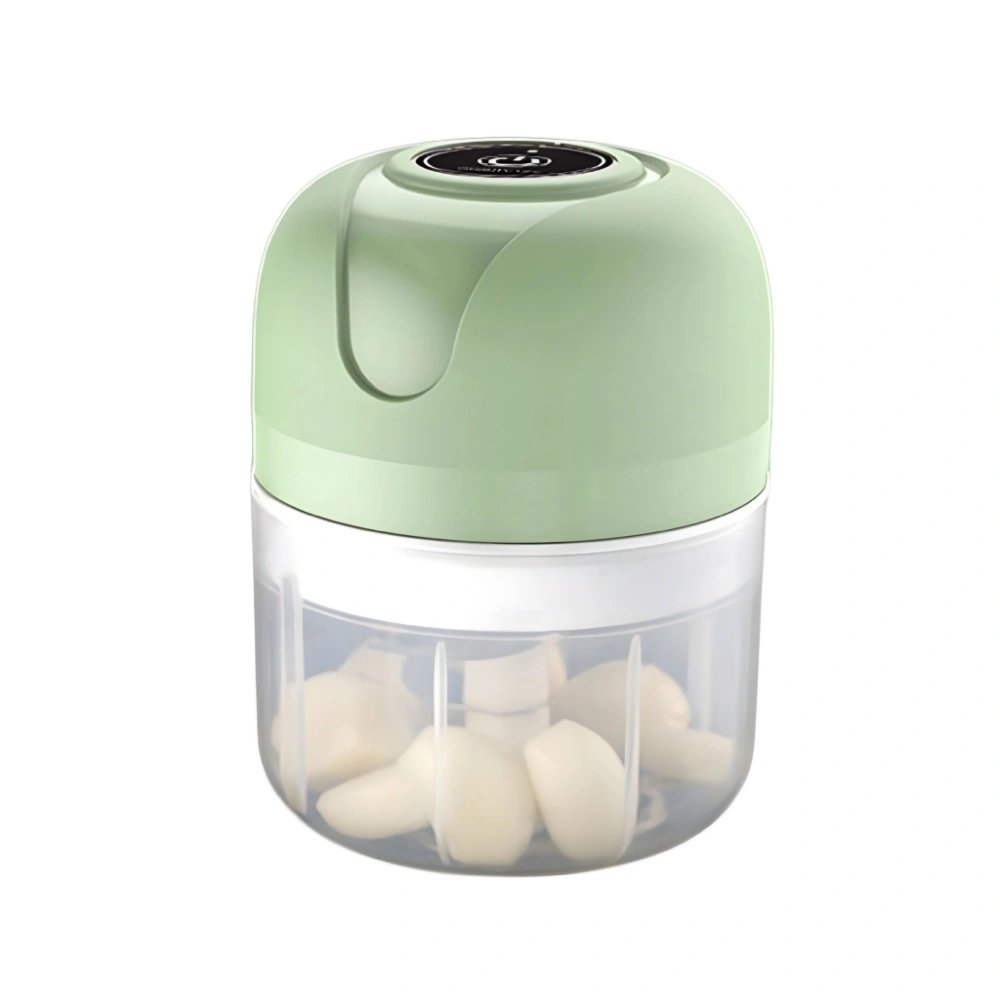 Multifunctional garlic chopper with sharp stainless blades, hygienic food baffle, and easy-clean design. Ideal for fast prep of garlic, chili, and herbs.