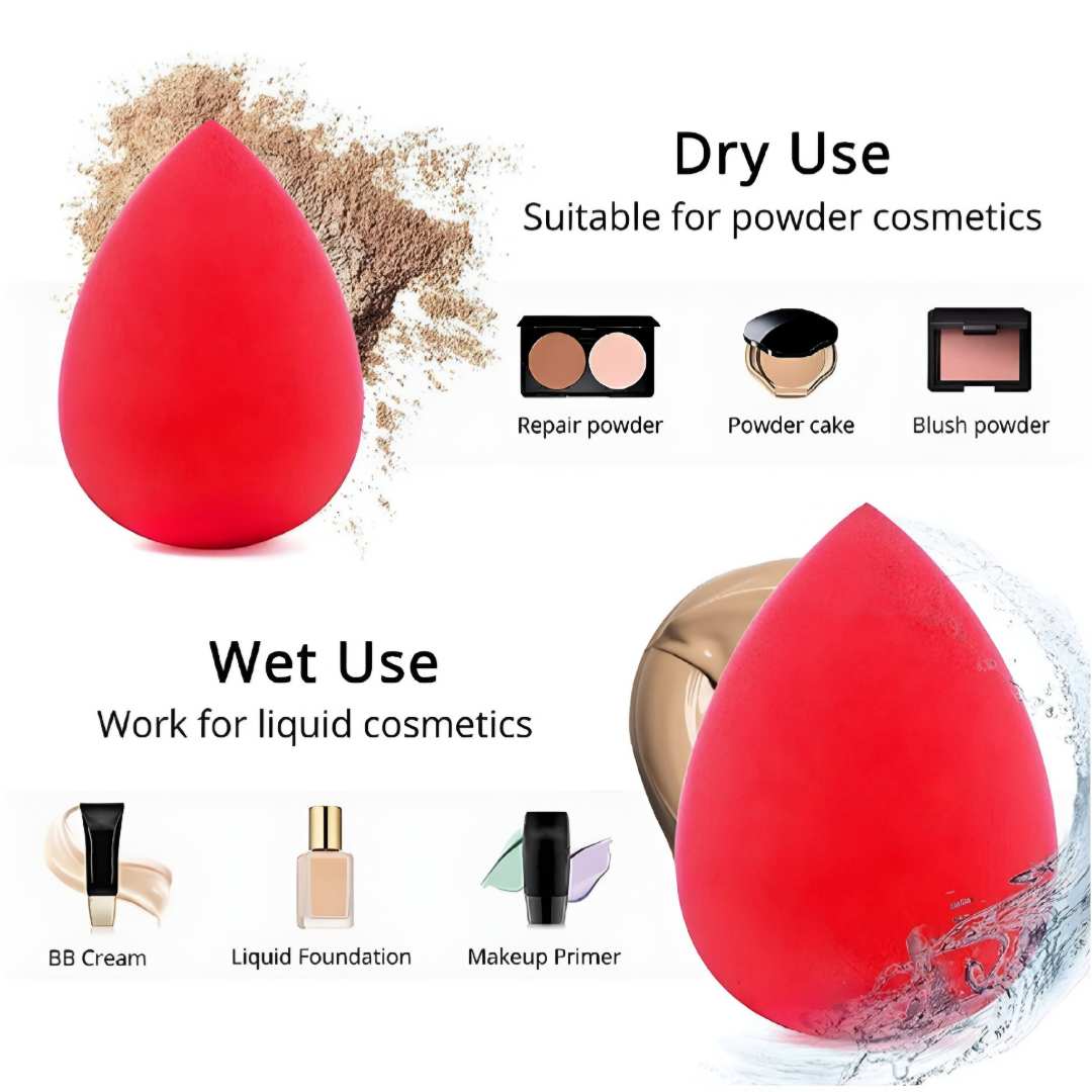 Experience flawless makeup application with this versatile teardrop-shaped cosmetic sponge, designed for both dry and wet use. When dry, it’s ideal for applying powder-based products such as blush, compact powder, and brow powder. When dampened, it expands in size and elasticity, making it perfect for blending liquid and cream-based cosmetics like foundation, BB cream, primer, and contour.