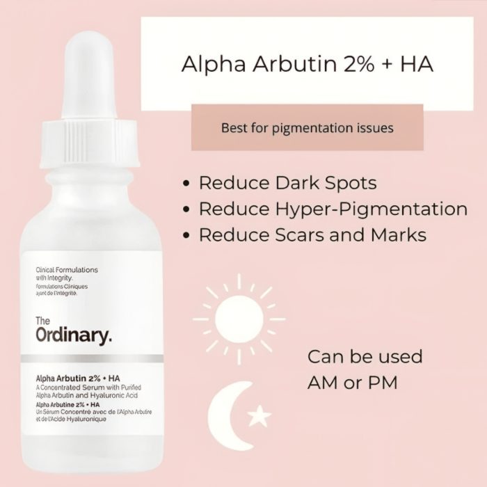 The Ordinary Alpha Arbutin 2% + HA is a high-strength, lightweight serum formulated to reduce the appearance of dark spots, uneven skin tone, and hyperpigmentation. Enriched with Alpha Arbutin for brightening and Hyaluronic Acid for deep hydration, this water-based serum absorbs quickly into the skin without leaving any residue. With consistent use, it promotes a clearer, brighter, and more even complexion.